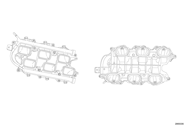 The lower intake manifold is an injection molded nylon composite design. The lower intake manifold is sealed to the cylinder heads using six individual press-in-place port silicone gaskets. Replace the gaskets whenever the lower intake manifold is removed from the engine. The seven upper intake manifold fasteners thread directly into the composite lower intake manifold and are a self-taping design.