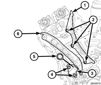 31. Remove the Camshaft Phaser Lock (5).