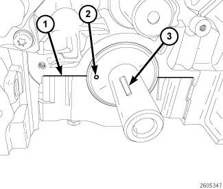 8. Verify that the key (3) is installed in the crankshaft.