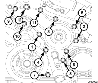 5. Tighten the M6 water pump mounting bolts to 12 Nm (106 in. lbs.) in sequential order.