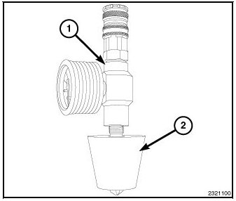 13. Connect the tool's suction hose (1) to the adaptor cone/vacuum gauge assembly (2).