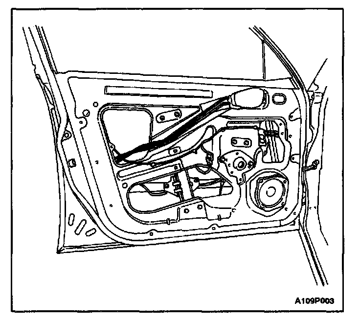 1. Remove the inside door handle. Refer to "Inside Door Handle".
