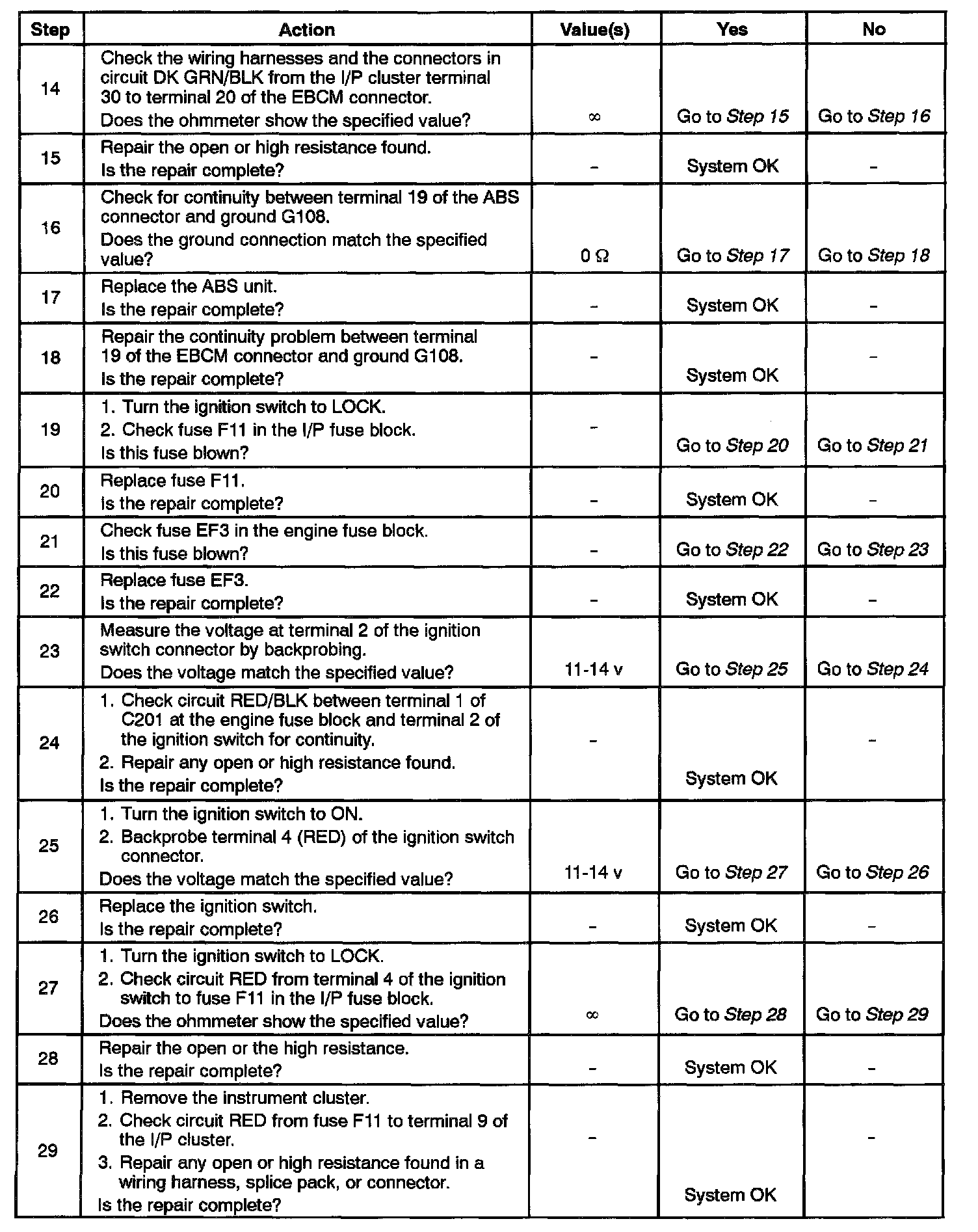 4. This begins a series of tests of the circuit from the indicator lamp to the EBCM and ground.