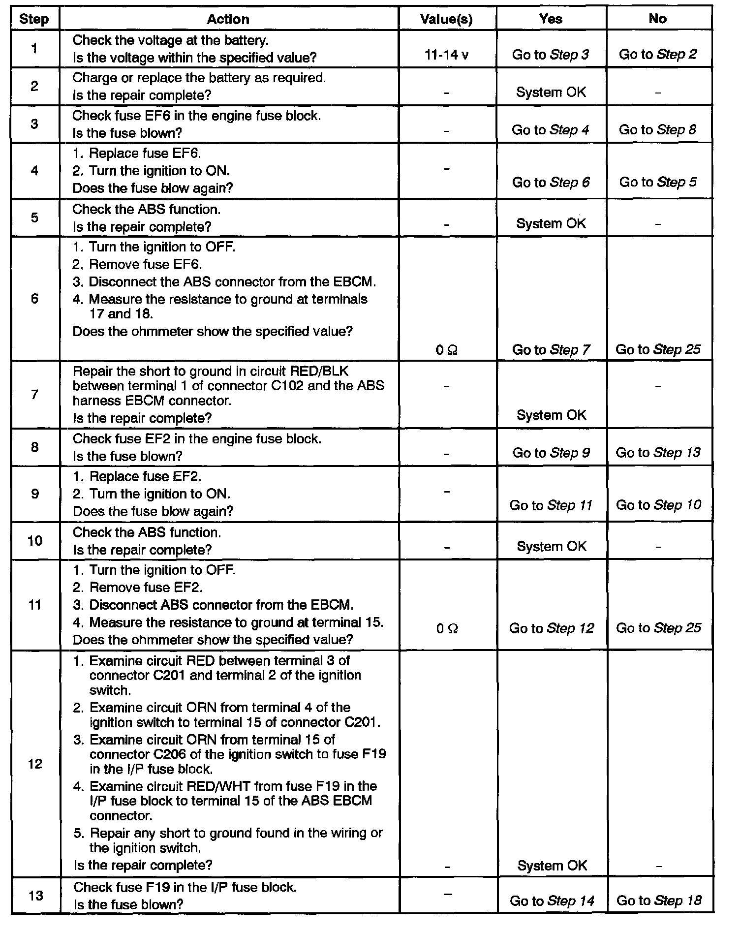 11. This step begins the check for voltage at the EBCM end of the ABS harness.