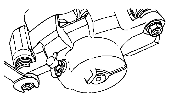 2. Remove the caliper guide pin that connects the caliper piston housing to the retaining frame.