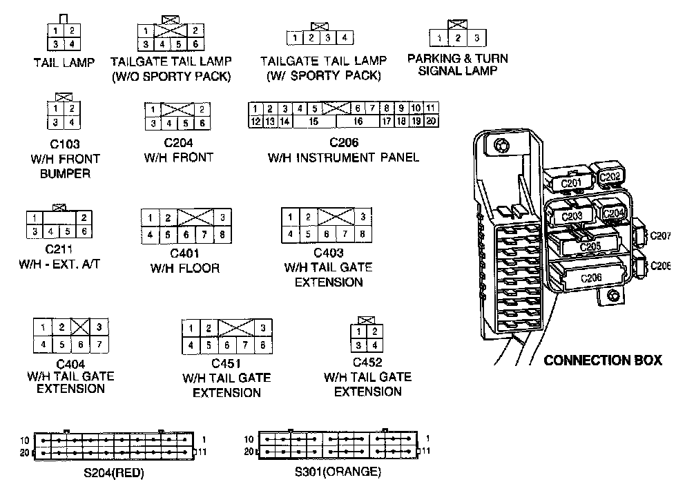 Connector Identification Symbol & Pin Number Position:
