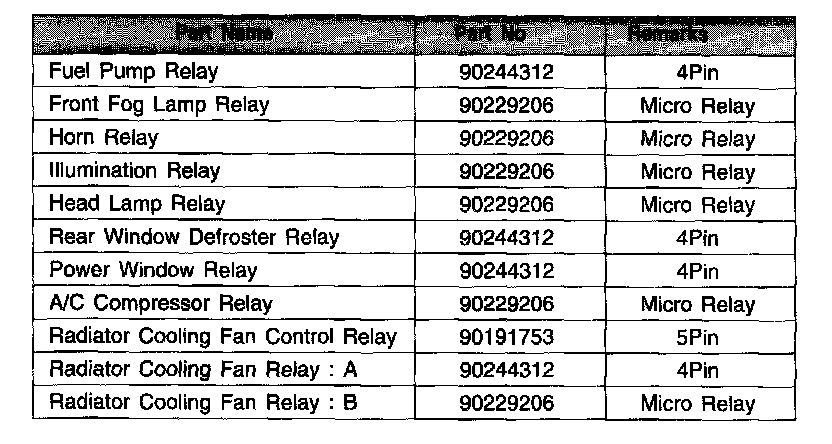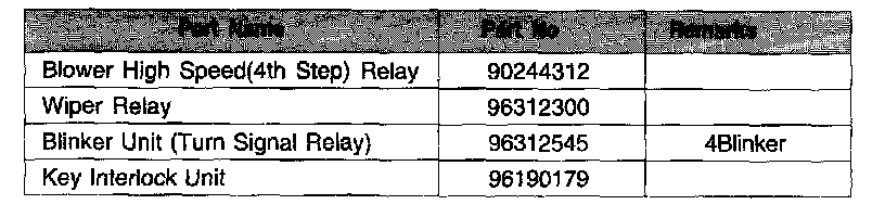 Position of Relay and Part Number