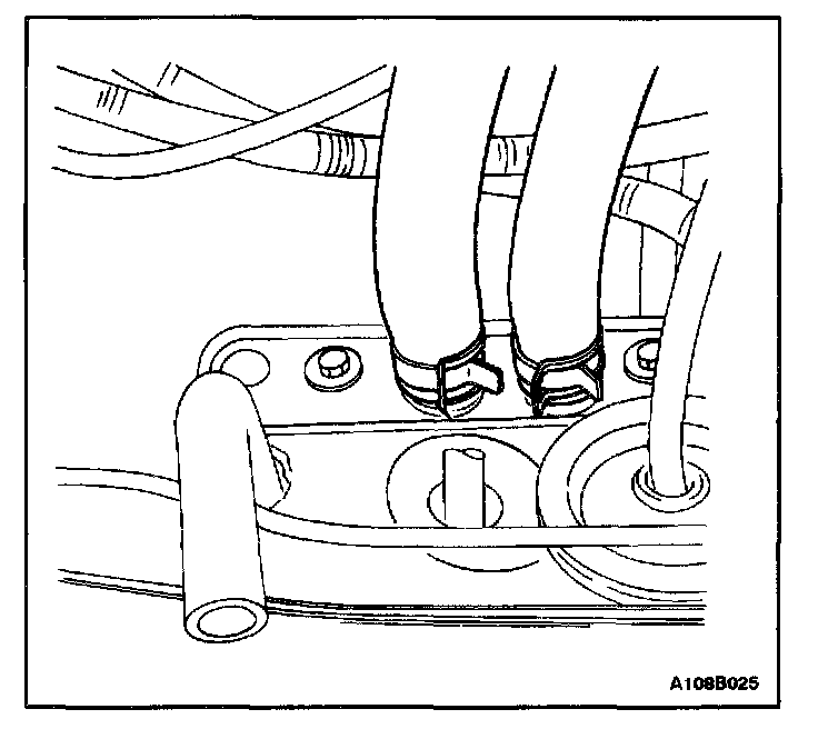 4. Compress and slide the spring clamps into position on the heater hoses and release the tension on the spring clamps.