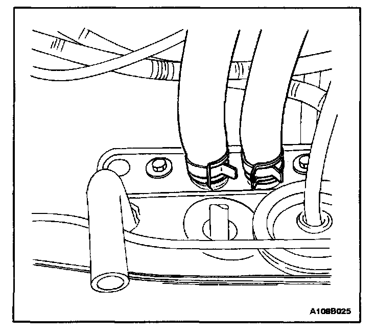 2. Compress and slide rearward the two heater hose spring clamps at the tire wall.