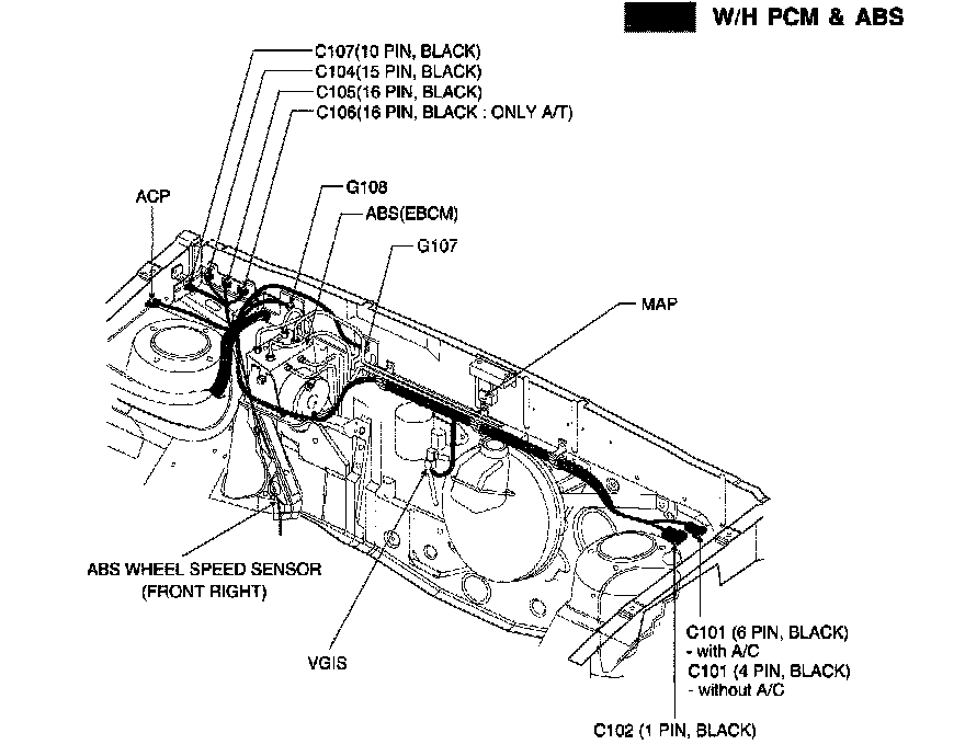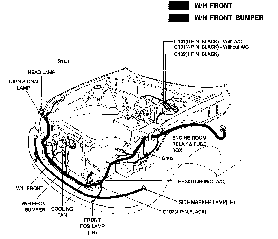 Position Of Connectors And Grounds - W/H Front, Front Bumper: