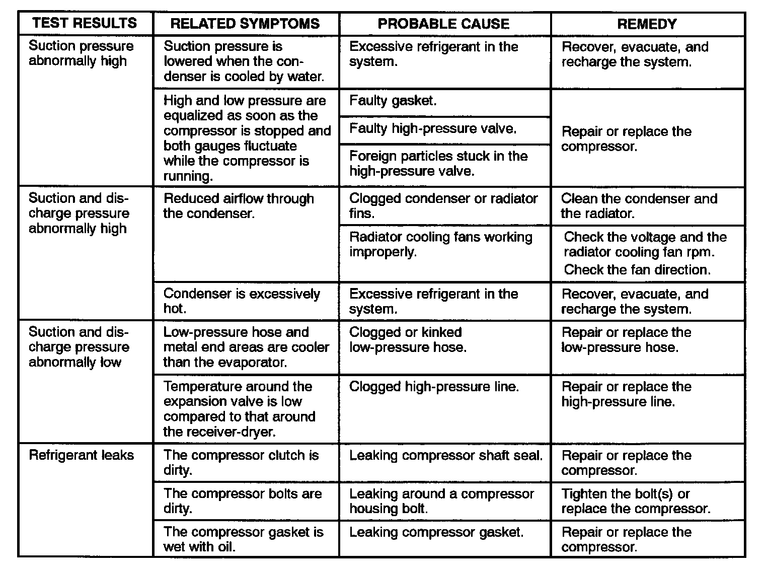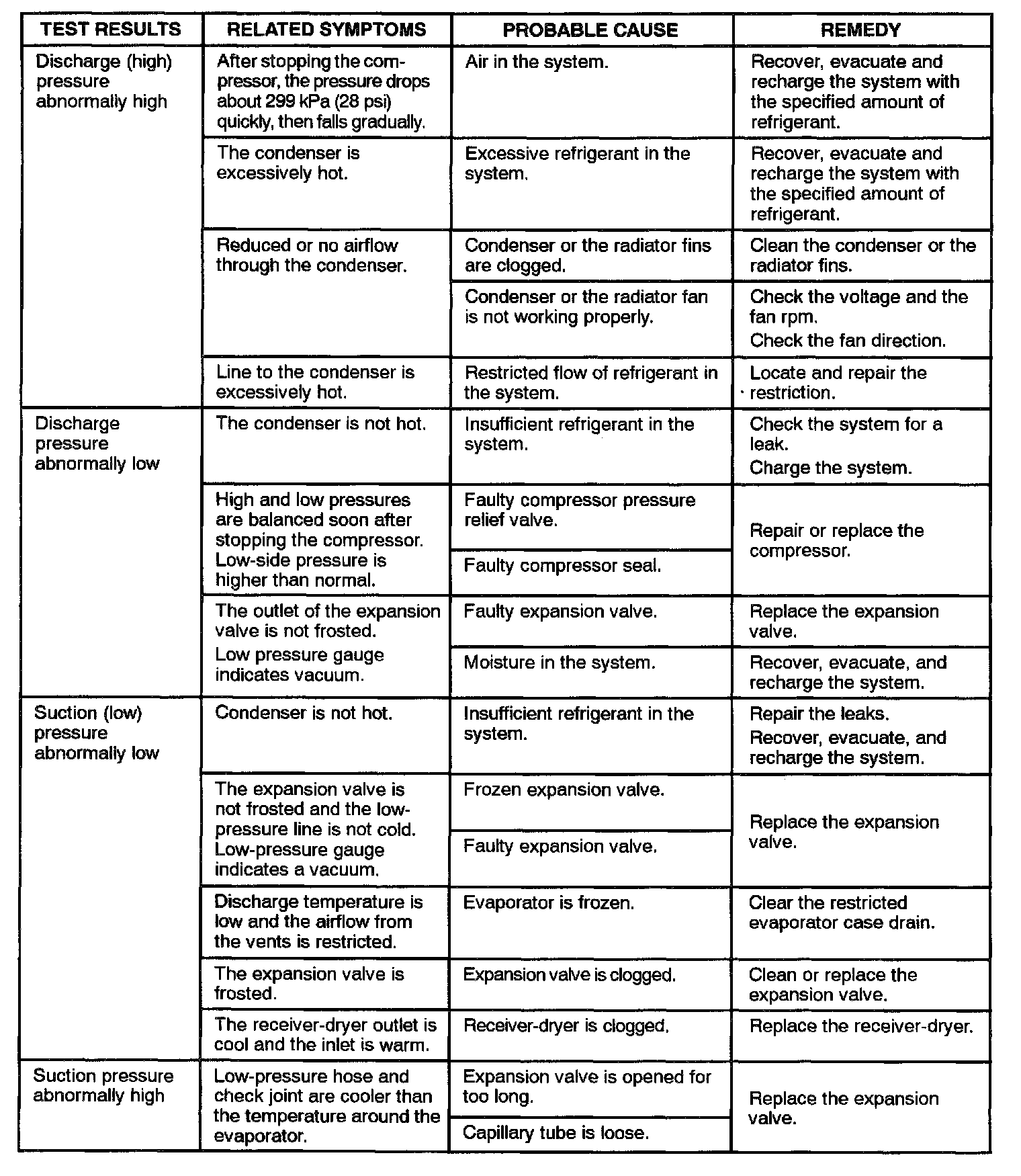 Pressure Test Chart (R-134A System)