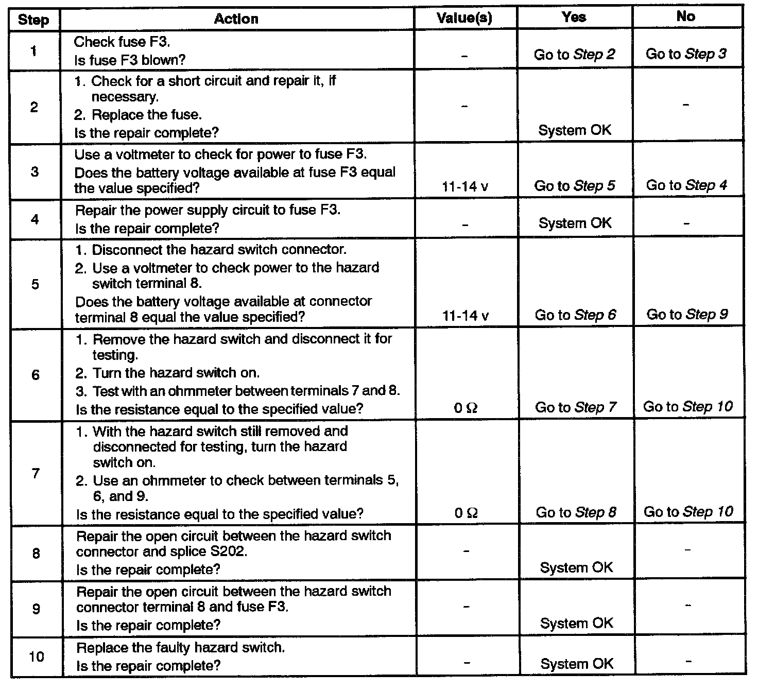 Hazard Lamps Do Not Operate, Turn Signals Are OK - Step 1 - 10:
