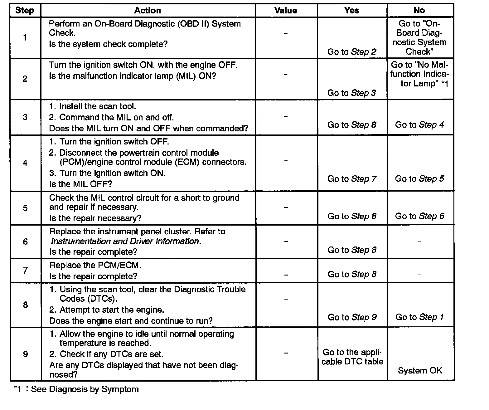 Number(s) below refer to the step number(s) on the diagnostic table.