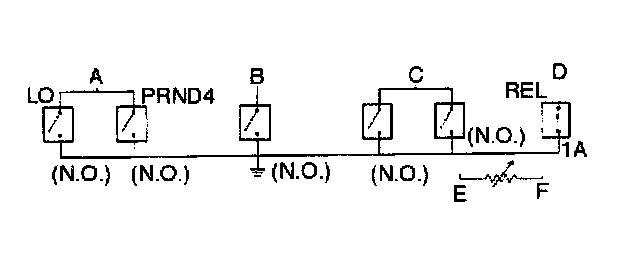 AUTOMATIC TRANSMISSION FLUID PRESSURE MANUAL VALVE POSITION SWITCH (TFP VAL. POSITION SW.)The pressure switch assembly (TFP val. position sw.) is attached to the valve body and contains six fluid pressure switches and the transaxle temperature sensor (refer to the separate description of the temperature sensor). Five of the fluid pressure switches (PRND4, DRIVE, LO, D21, REV) are normally open and are used to indicate the position of the manual valve. The PCM uses this information to control line pressure, TCC apply and release and shift solenoid operation.