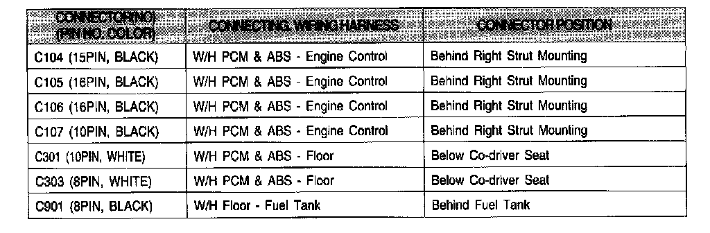 Connector Information Chart: