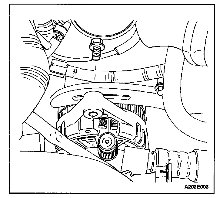 6. Remove the serpentine accessory drive belt. For vehicles equipped with power steering and air conditioning, refer to Power steering Pump.