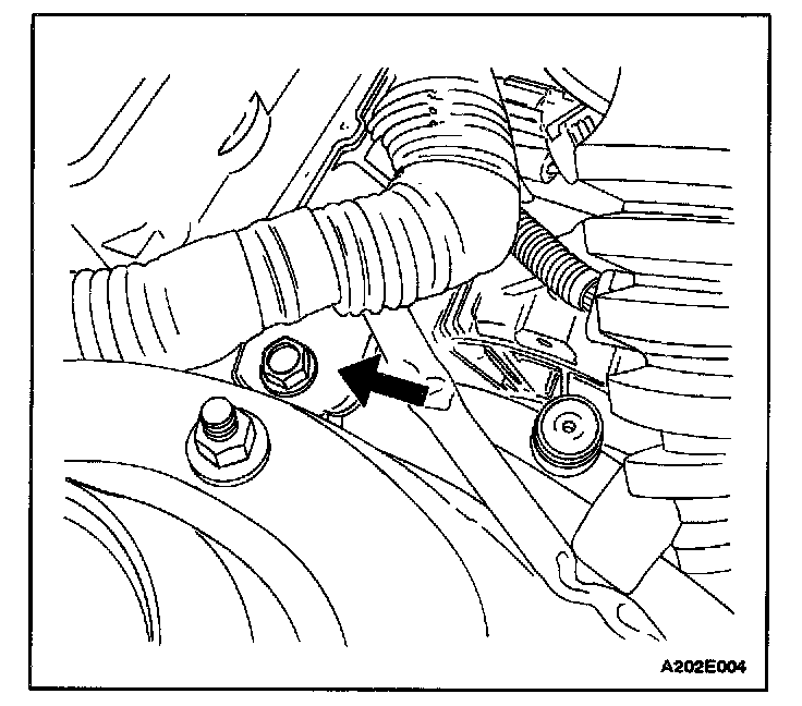 4. Secure the generator to the shackle bracket with the bolt (SOHC engine is shown). For vehicles equipped with power steering and air conditioning, refer to Power Steering Pump.