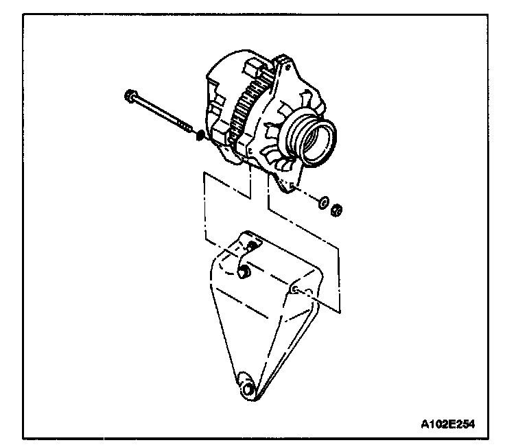 12. Remove the nut and the washers which hold the generator lower bracket-to-generator bolt.
