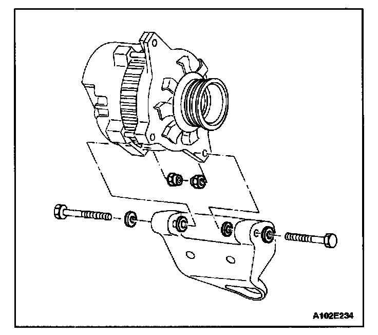 1. Install the generator at the generator lower bracket and insert the generator bolts.