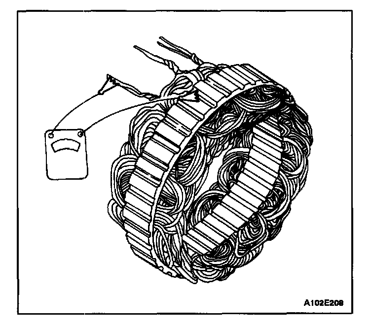 9. Test the rotor for open and short circuits. The reading should be 1.7 to 2.3 ohms, or the rotor should be replaced.