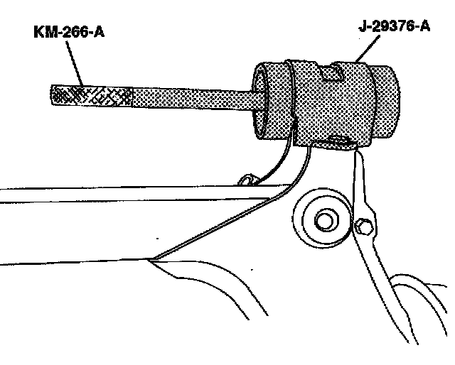 5. Remove the rear axle bushing completely by striking the control arm bushing remover/installer J-29376-6A with the remover KM-266-A.