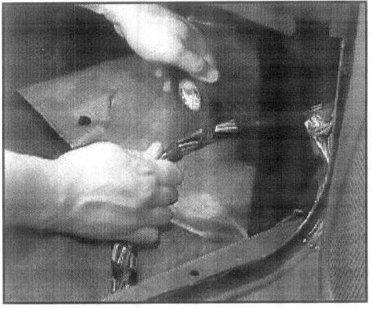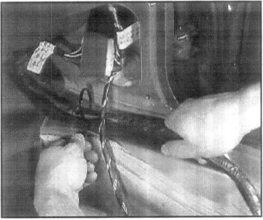 3. Lift the wire harness away from the floor pan and inspect the harness for chaffed wires. If any wires show signs of damage, carefully wrap each individual wire over the damaged area with electrical tape to ensure proper insulation.
