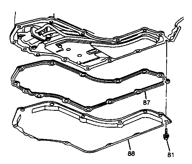 2. Inspect the gasket (87) and the pan (88) for cracks, dents, or cuts. Install the transaxle pan (88) and the gasket (87).
