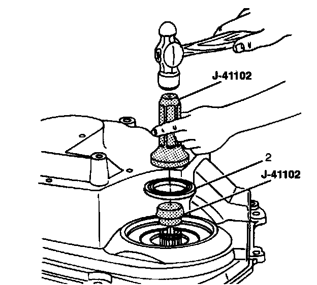 1. Install the transaxle drive seal (2) using the axle seal installer J-41102.