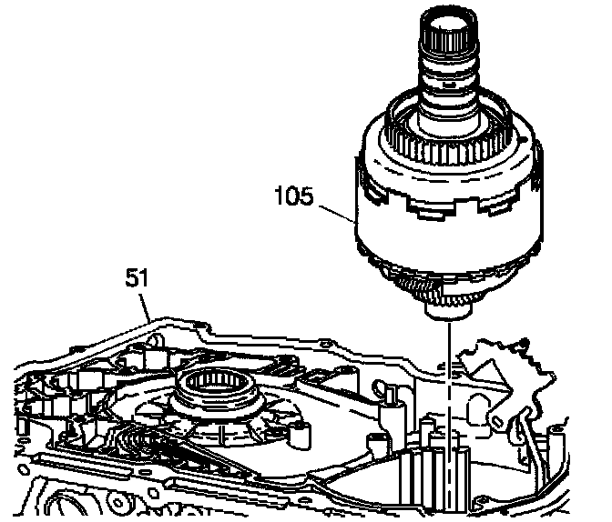 Install the direct/coast clutch and reaction carrier assembly (105) into the transmission case (51).