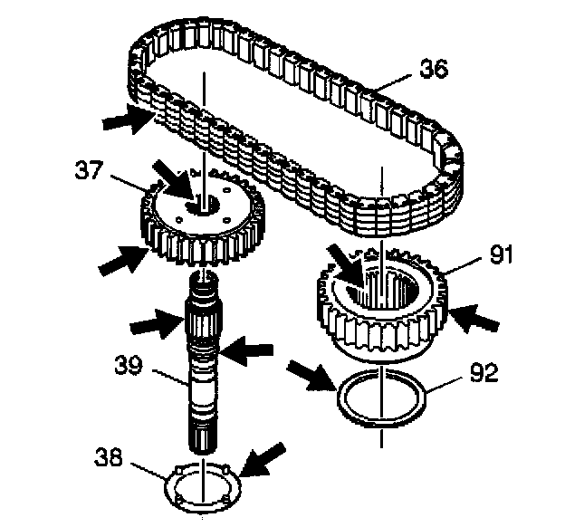 5. Inspect the drive sprocket, the driven sprocket, the drive link assembly, and the turbine shaft for damage or excessive wear.