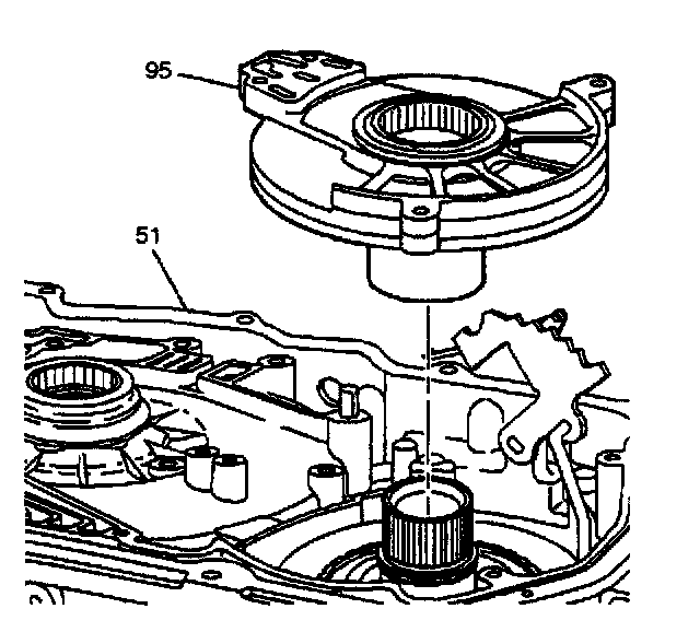 DRIVEN SPROCKET SUPPORT ASSEMBLY INSTALLATIONInstall the driven sprocket support and 2nd clutch assembly (95) into the transaxle case (51). When installed properly, the driven sprocket support sits slightly below the machined surface of the transaxle case (51).