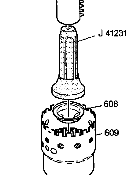 1. Assemble a new inner seal assembly (608) if the old seal was damaged and removed. Use an arbor press and the J 41231 in order to press the inner seal assembly onto the forward clutch housing (609).