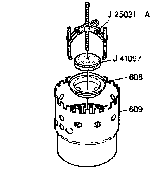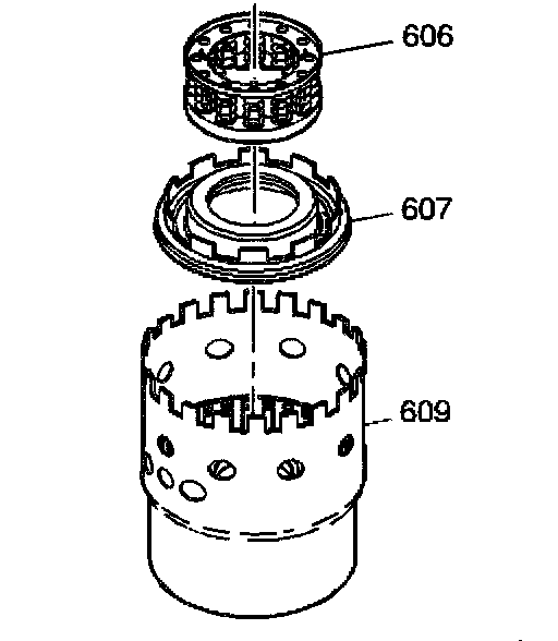 1. Remove the snap ring (600) from the housing assembly (609).