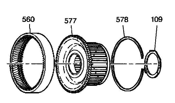 1. Assemble the forward clutch hub (577) onto the input internal gear (560) and retain it with the snap ring (578).
