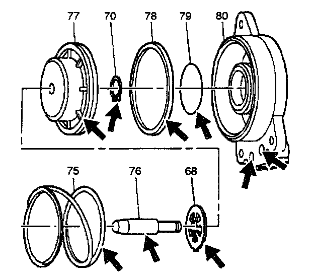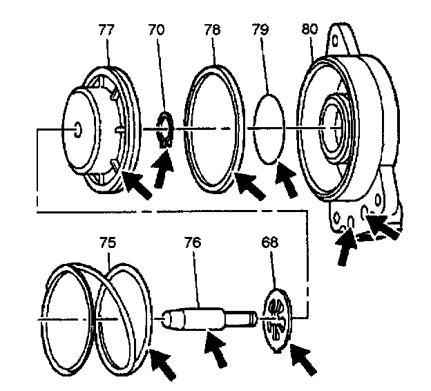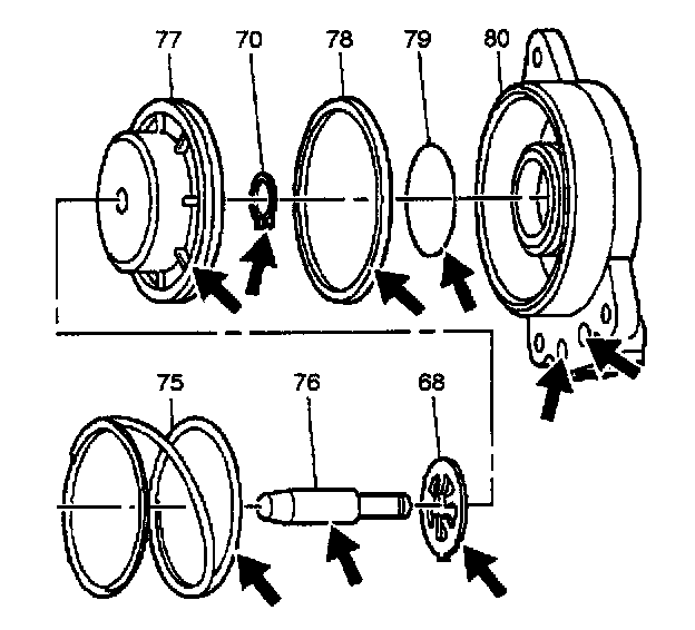 13. Install the new seals (78 and 79) onto the servo piston (77) and servo cover (80).