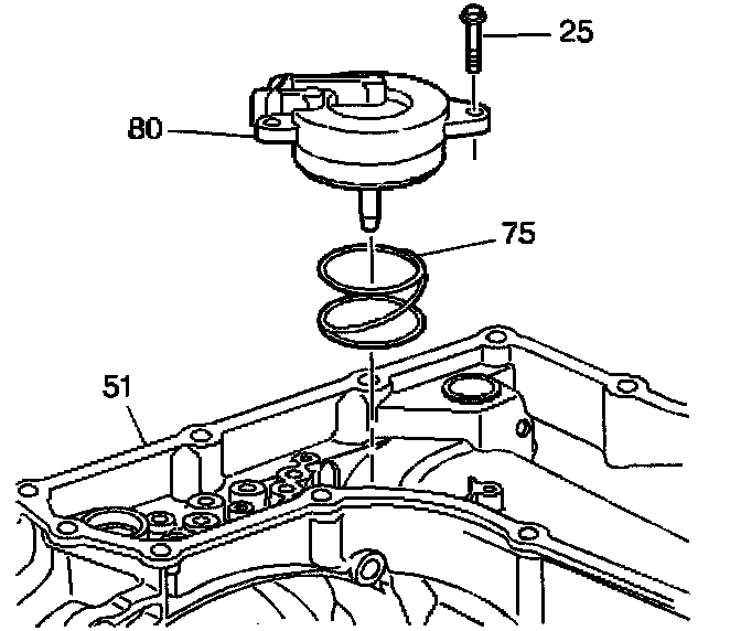 15. Install the servo return spring (75) onto the transmission case (51).