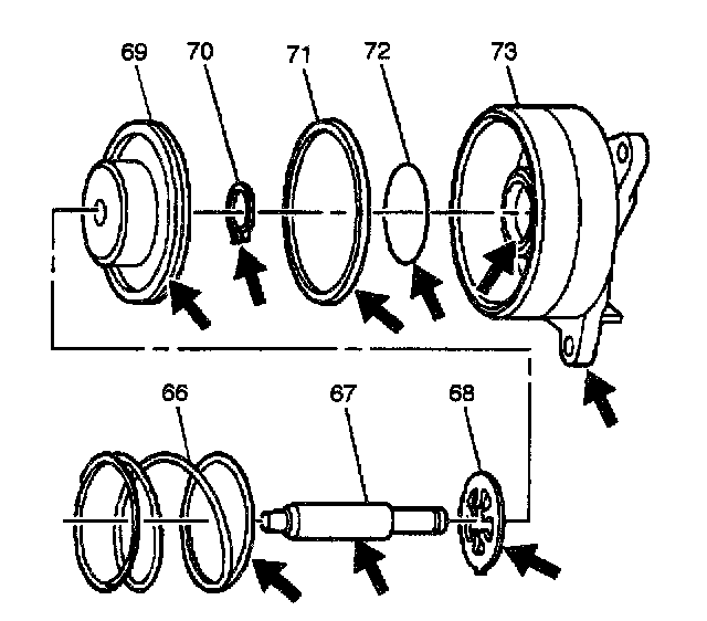3. Remove the piston (69) and the servo cushion springs (68) from the servo pin (67).
