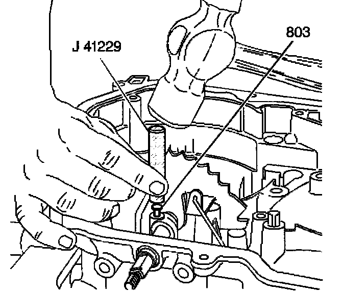 4. Install the manual shaft pin (803) into the case. Use the J 41229.