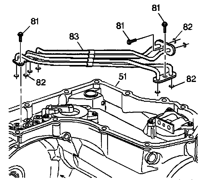 7. Install the oil feed pipe assembly (83) onto the transmission case (51).