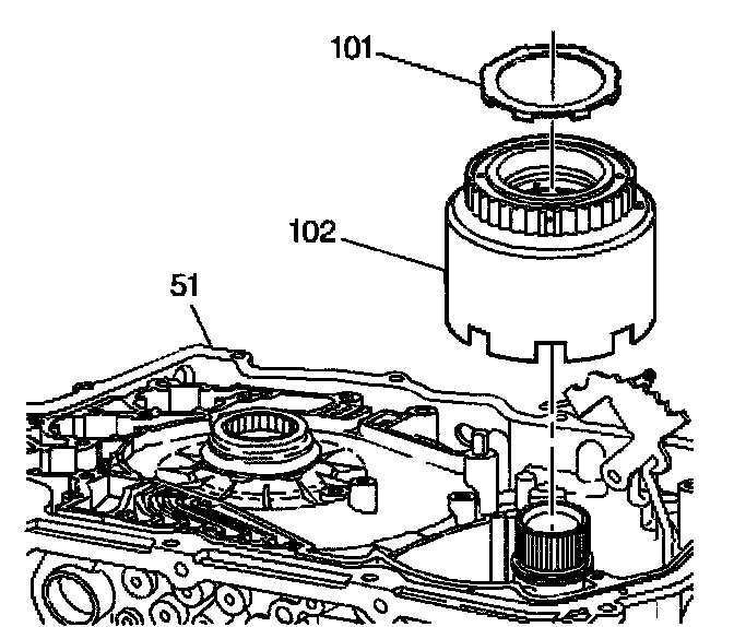 REVERSE INPUT AND 2ND ROLLER CLUTCH INSTALLImportant: The tangs on the reverse clutch housing spline to the tangs on the reaction carrier sun gear and shell assembly.