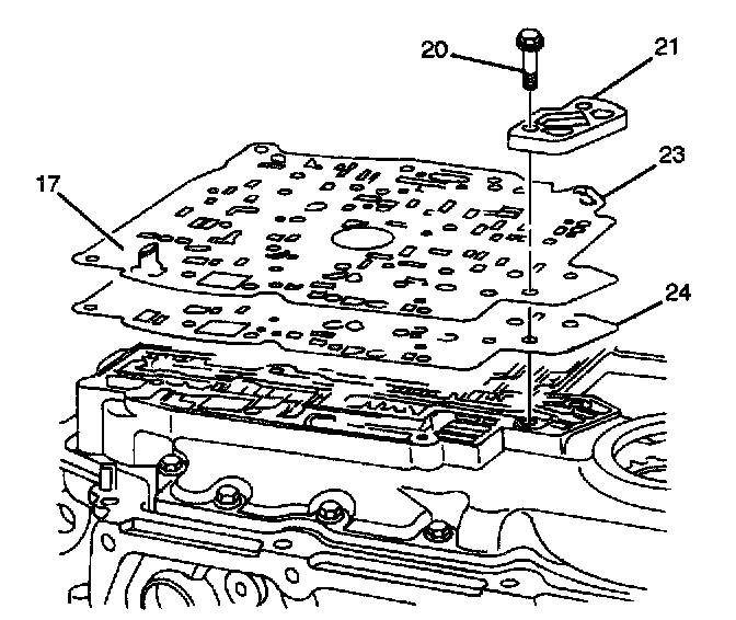 4. Install the spacer plate (23) on top of the gasket and channel plate.
