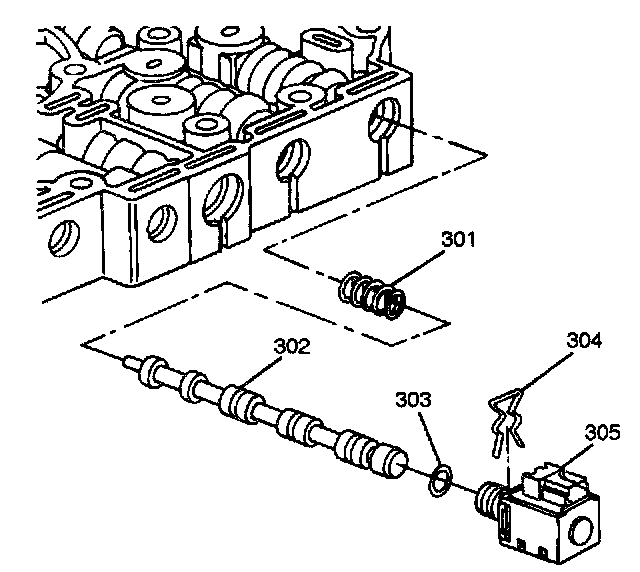3. Remove the solenoid retainer clip (304) from the valve body.