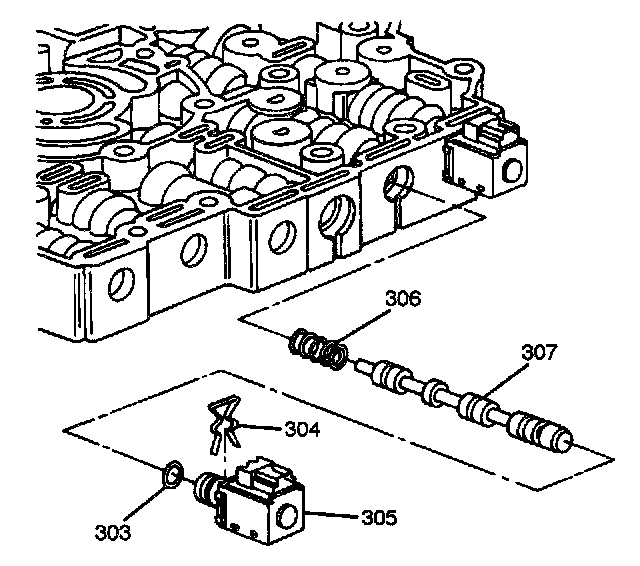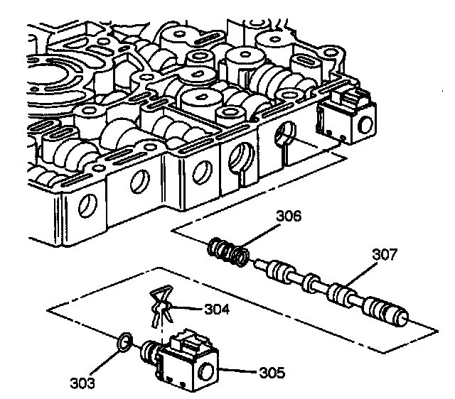 3. Remove the solenoid retainer clip (304) from the valve body.