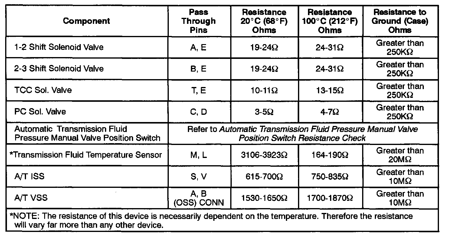 4T40-E Component Resistance Chart