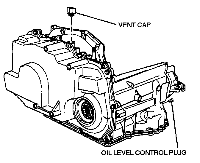 Caution: Removal of the fluid level screw when the transmission fluid is hot may cause injury if fluid drains from the screw hole.
