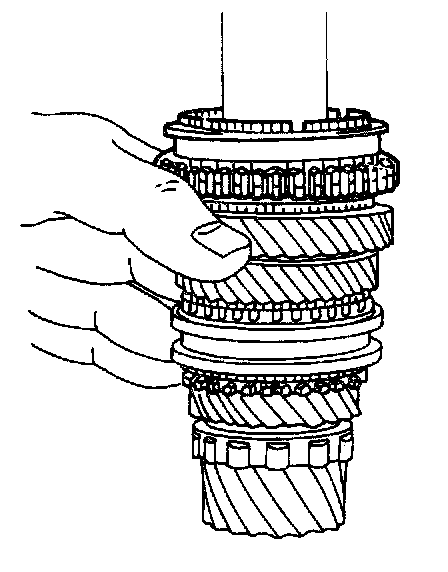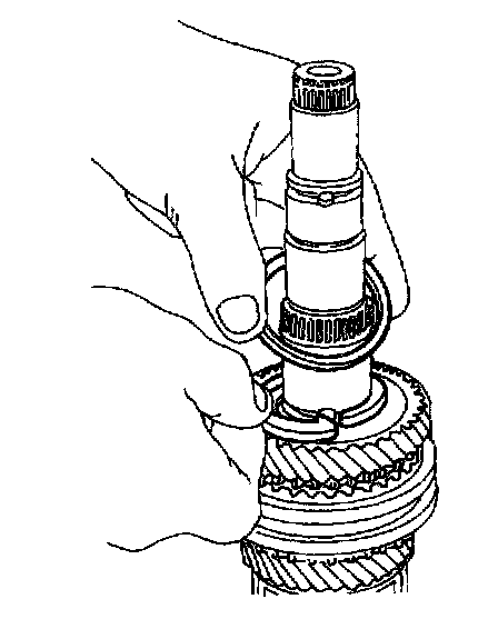 9. Remove the first-second synchronizer gear from the mainshaft.