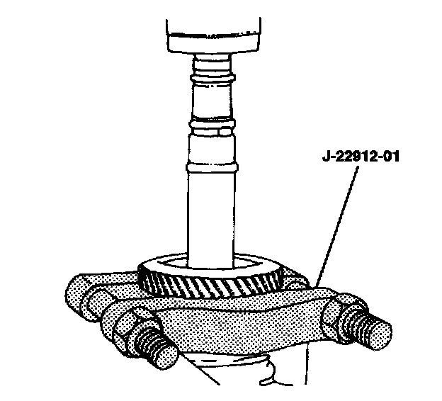 11. Remove the second gear using the universal bearing puller J-22912-01.