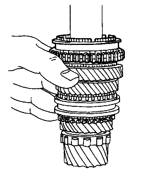 4. Remove the synchronizer hub sleeve that contains the synchronizer spring.
