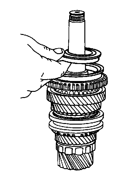 21. Install the mainshaft wear plate, the flat-type first-gear needle bearing, and the first gear.