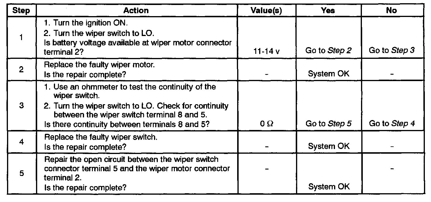 Wipers Do Not Work on LO Speed, Hi Speed OK